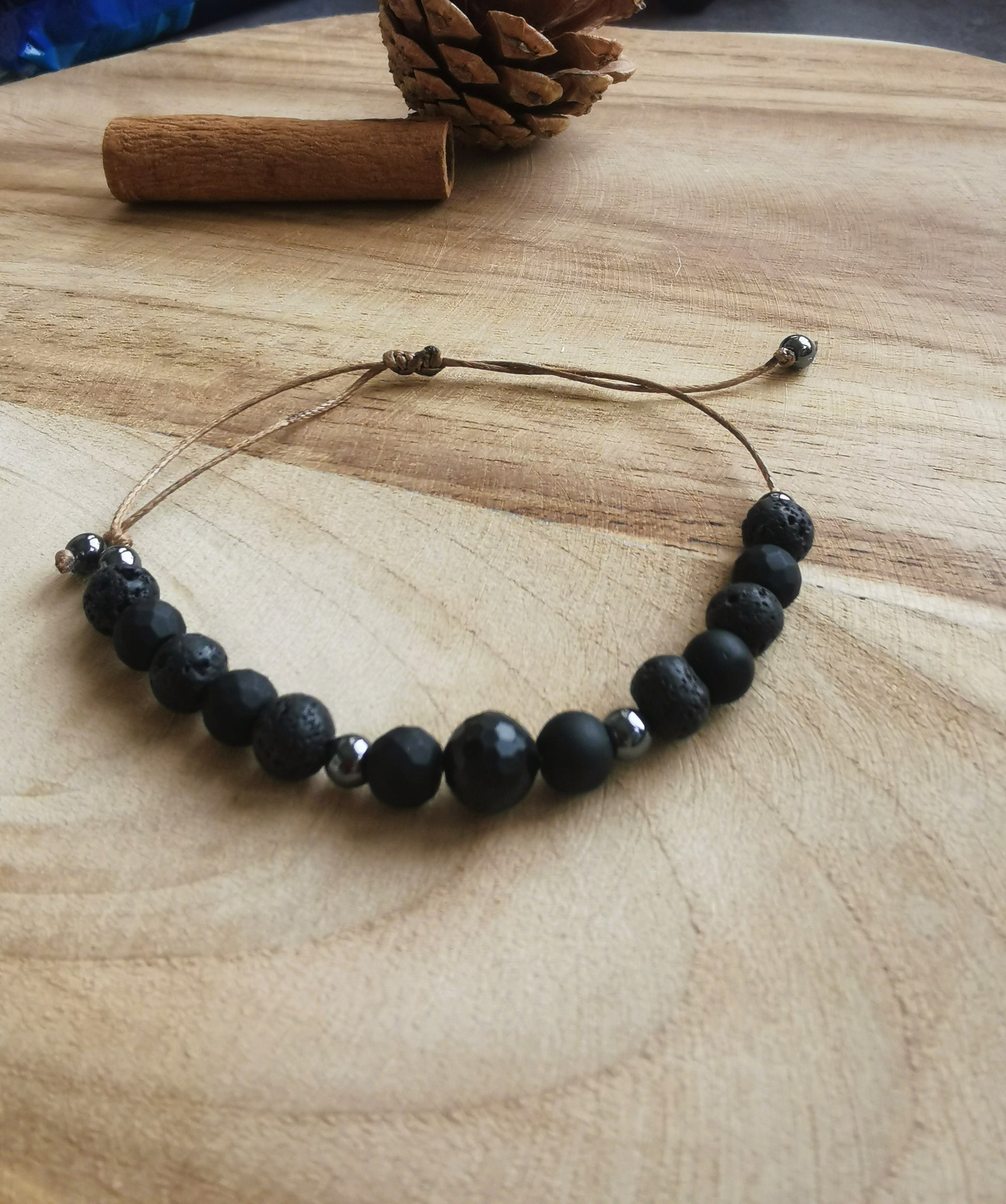 ⚫ Męska bransoletka z turmalinu, onyksu i lawy wulkanicznej