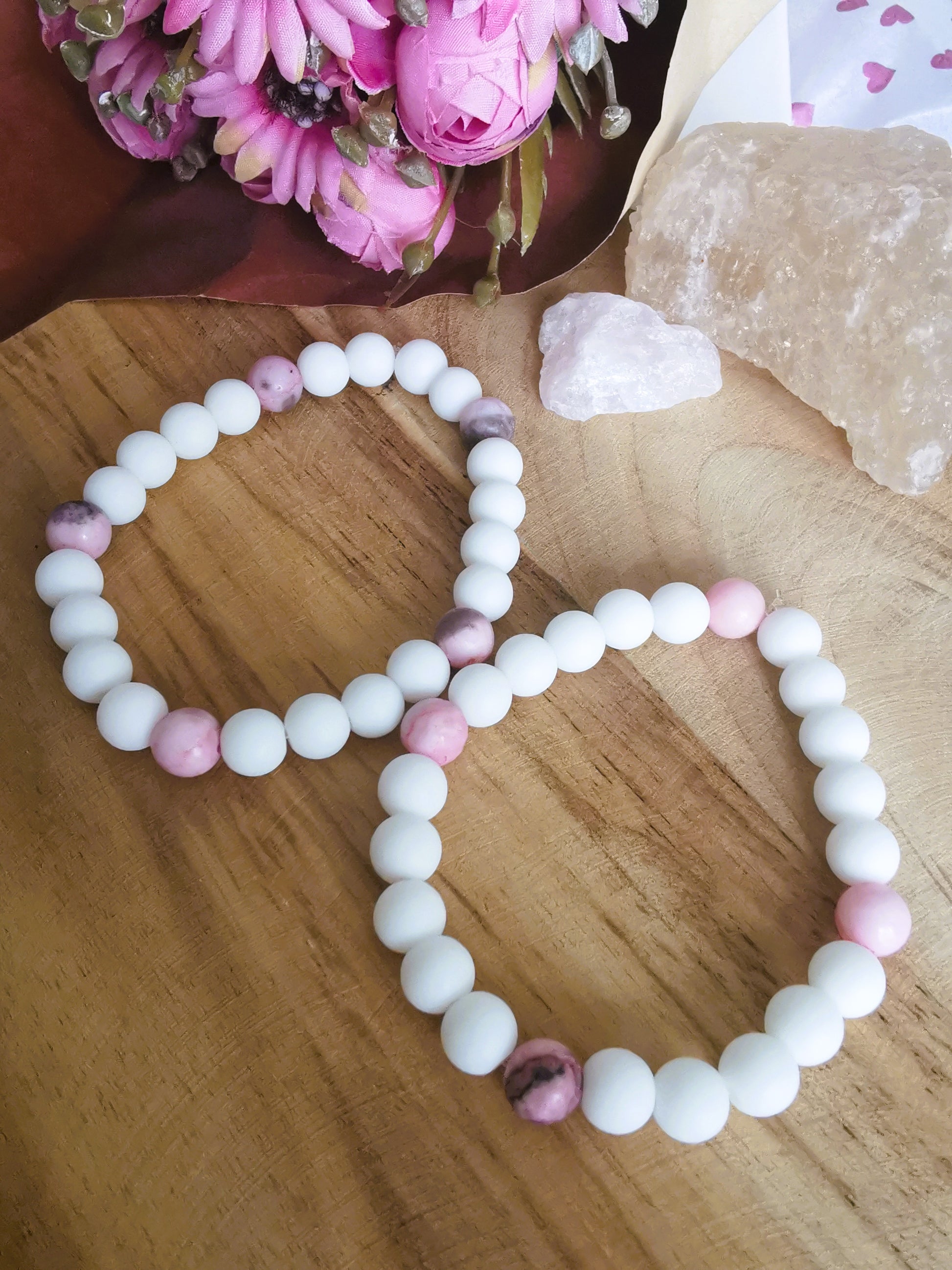 Bransoletka „Czułość” różowy & biały howlit
