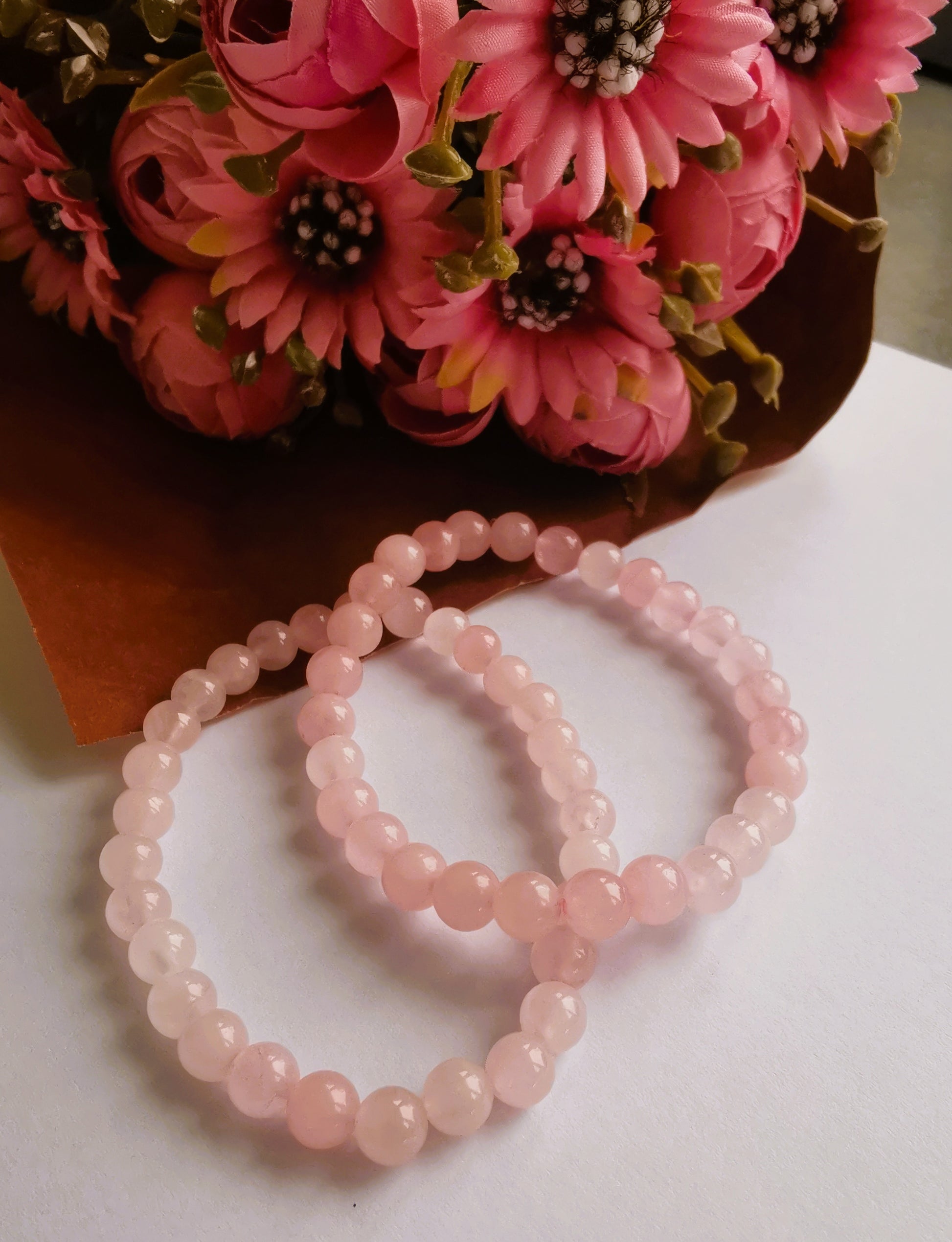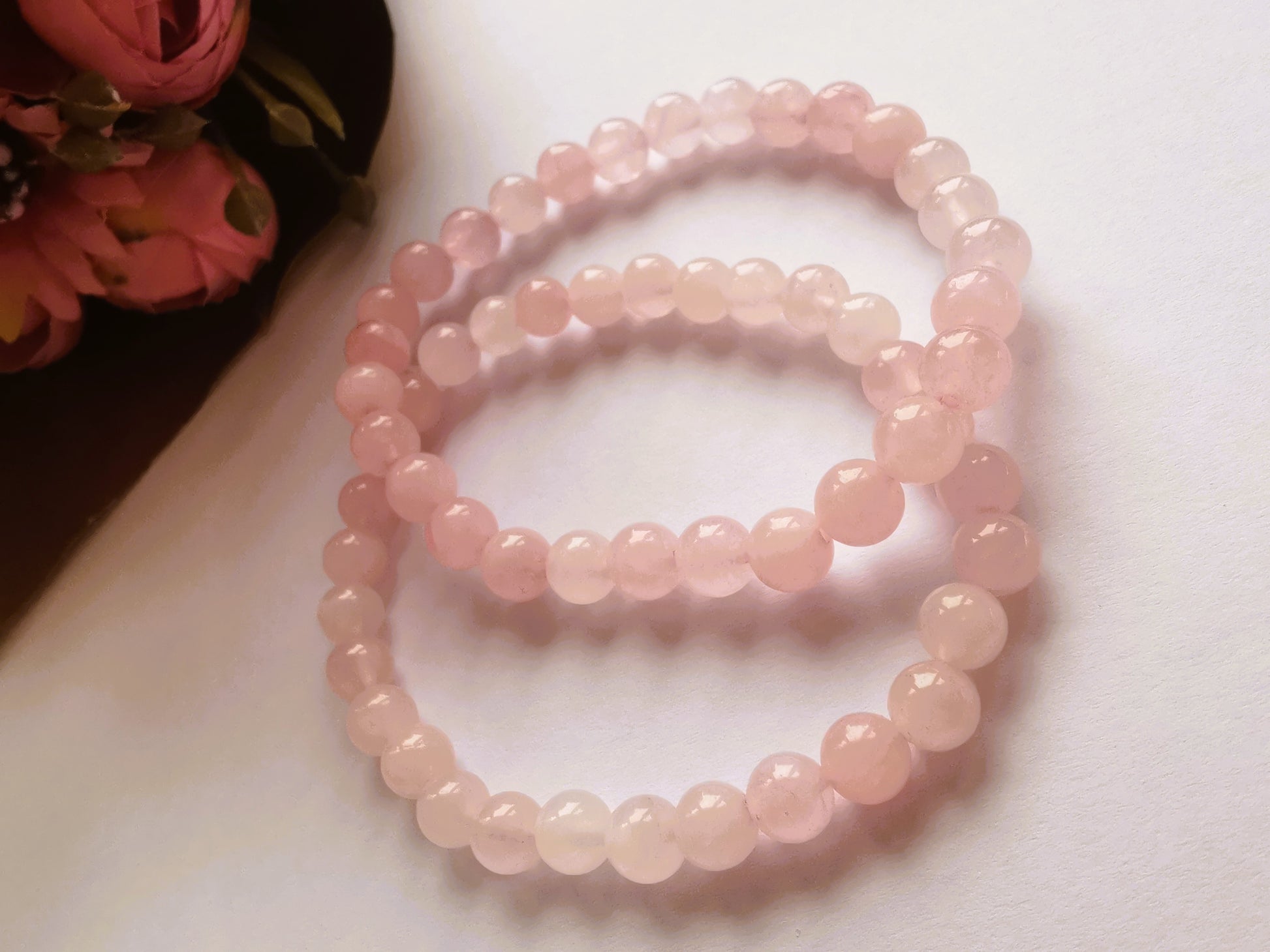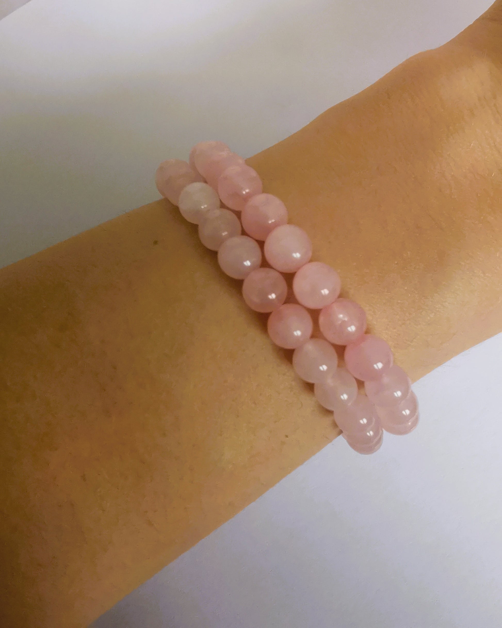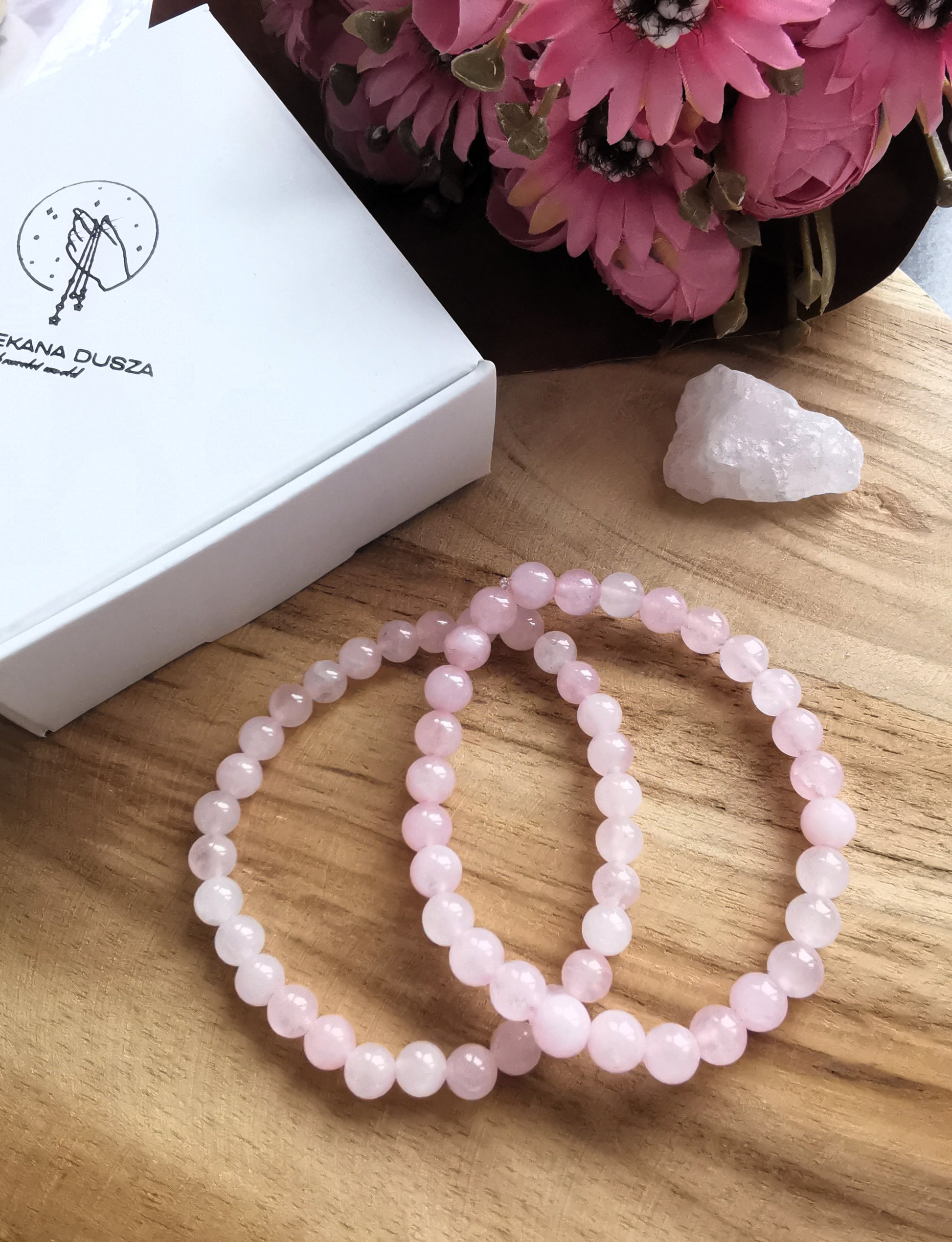 Delikatna bransoletka z naturalnego kwarcu różowego — kamienia miłości, czułości i łagodności.