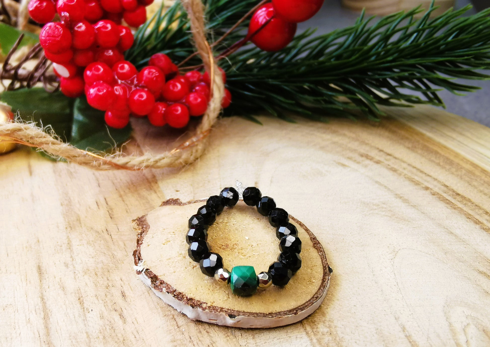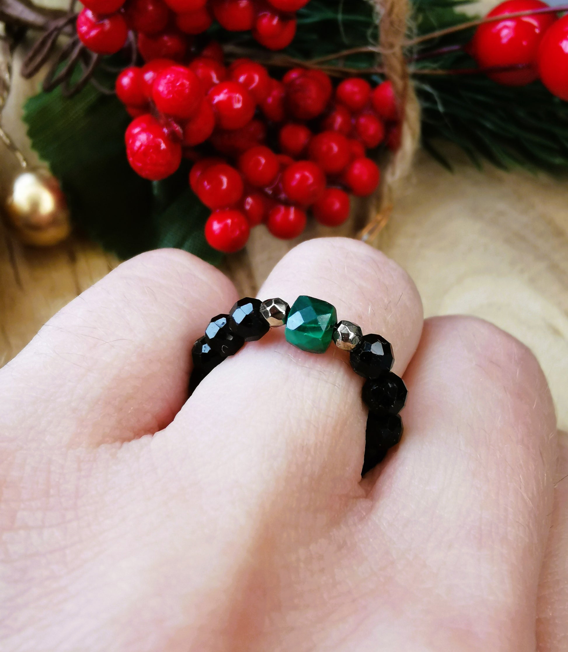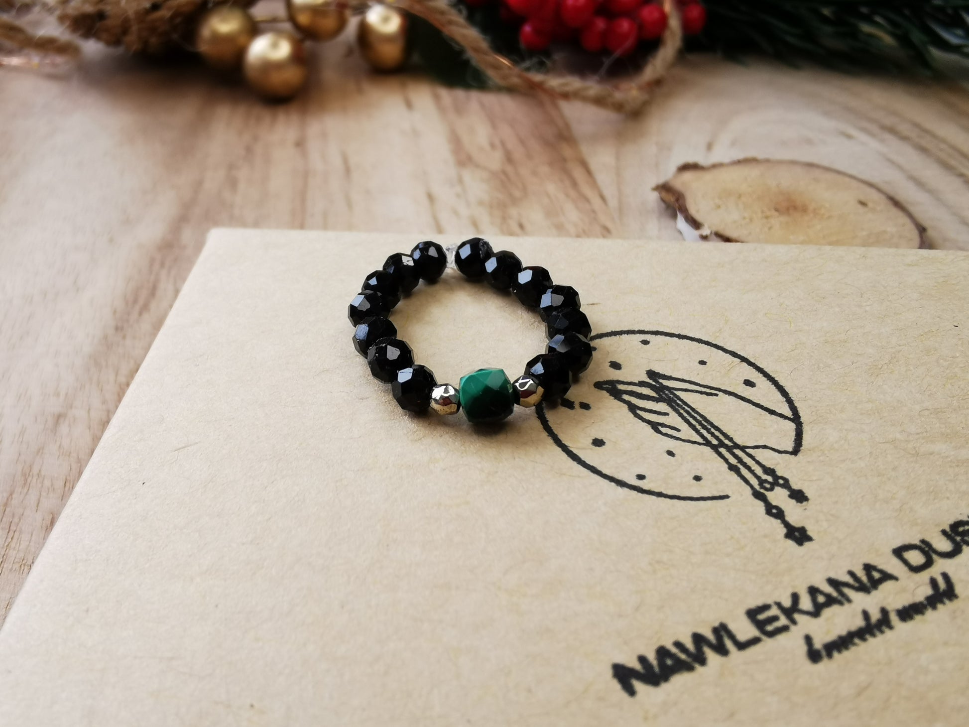 Pierścionek „Leśna Energia” – Turmalin • Malachit • Hematyt