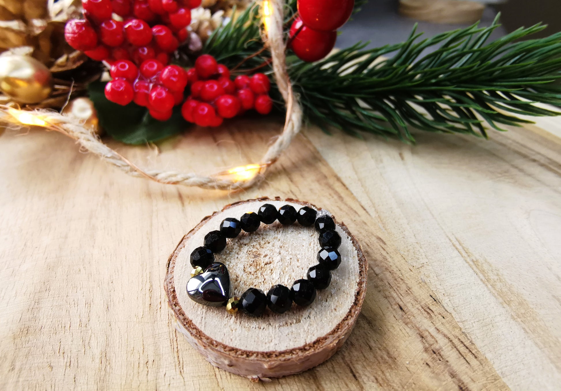 Pierścionek „Turmalinowy Minimalizm” – Turmalin • Hematyt